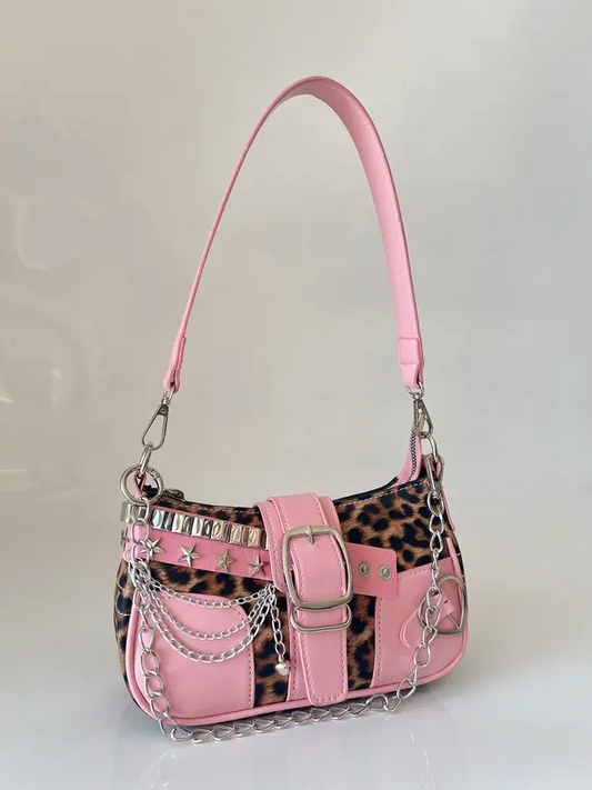 Punk Style Colorblock Star Chain Small Shoulder Crossbody Bag