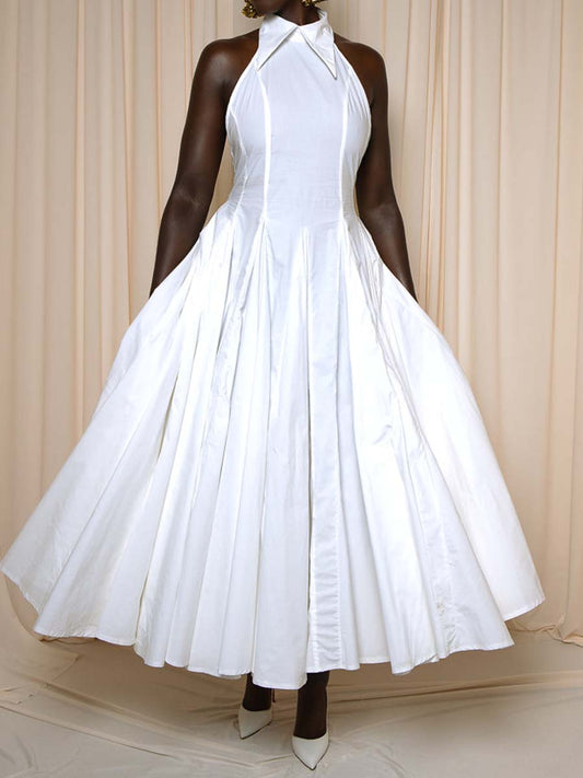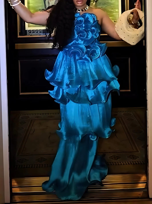 Three-dimensional Flower Classic Black And White Color Split Dress