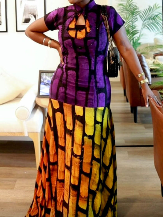 Fashion Cutout Color Block Maxi Dress