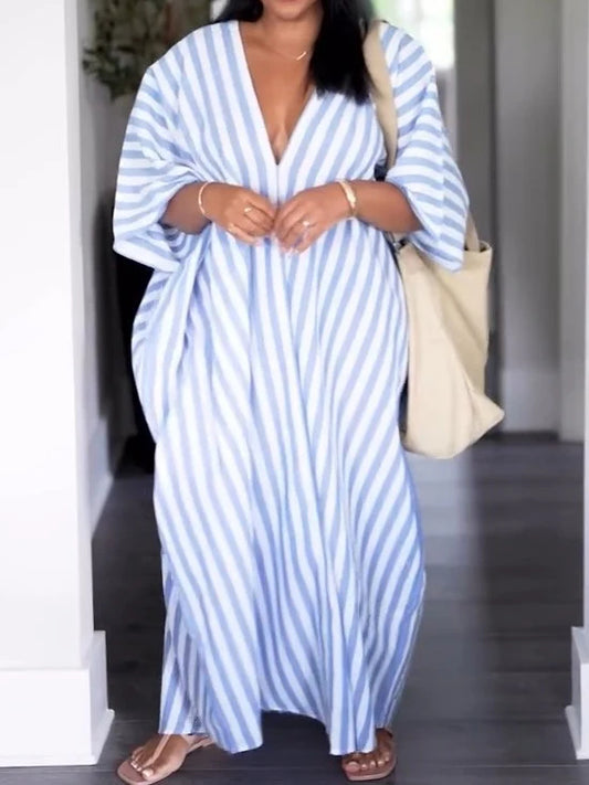 Striped Print Batwing Sleeve Casual Dress