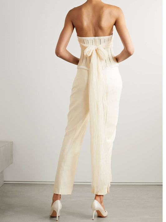 Strapless Cotton-blend Twill Bustier Top