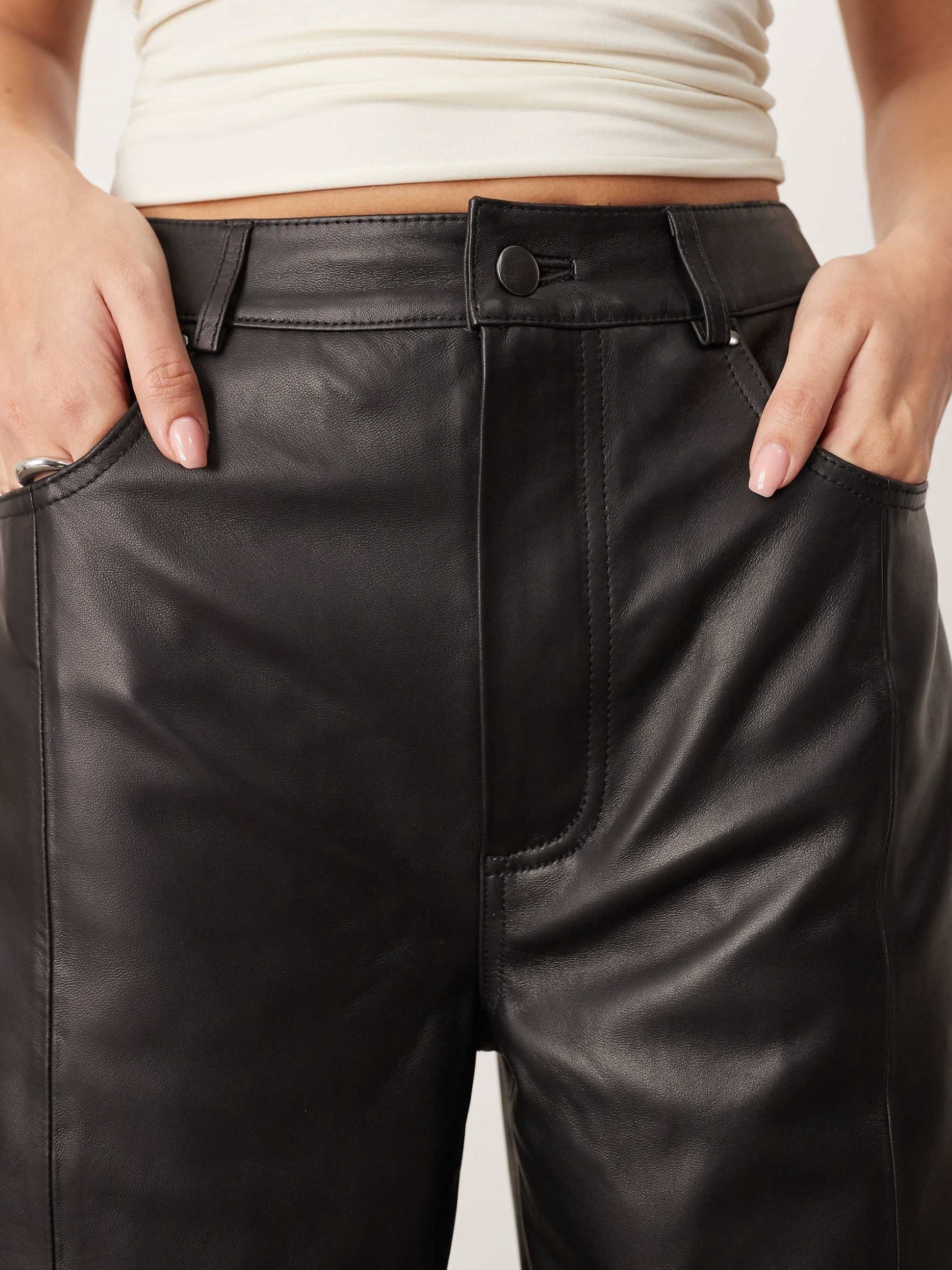Leather High-Waisted Bucket Pants