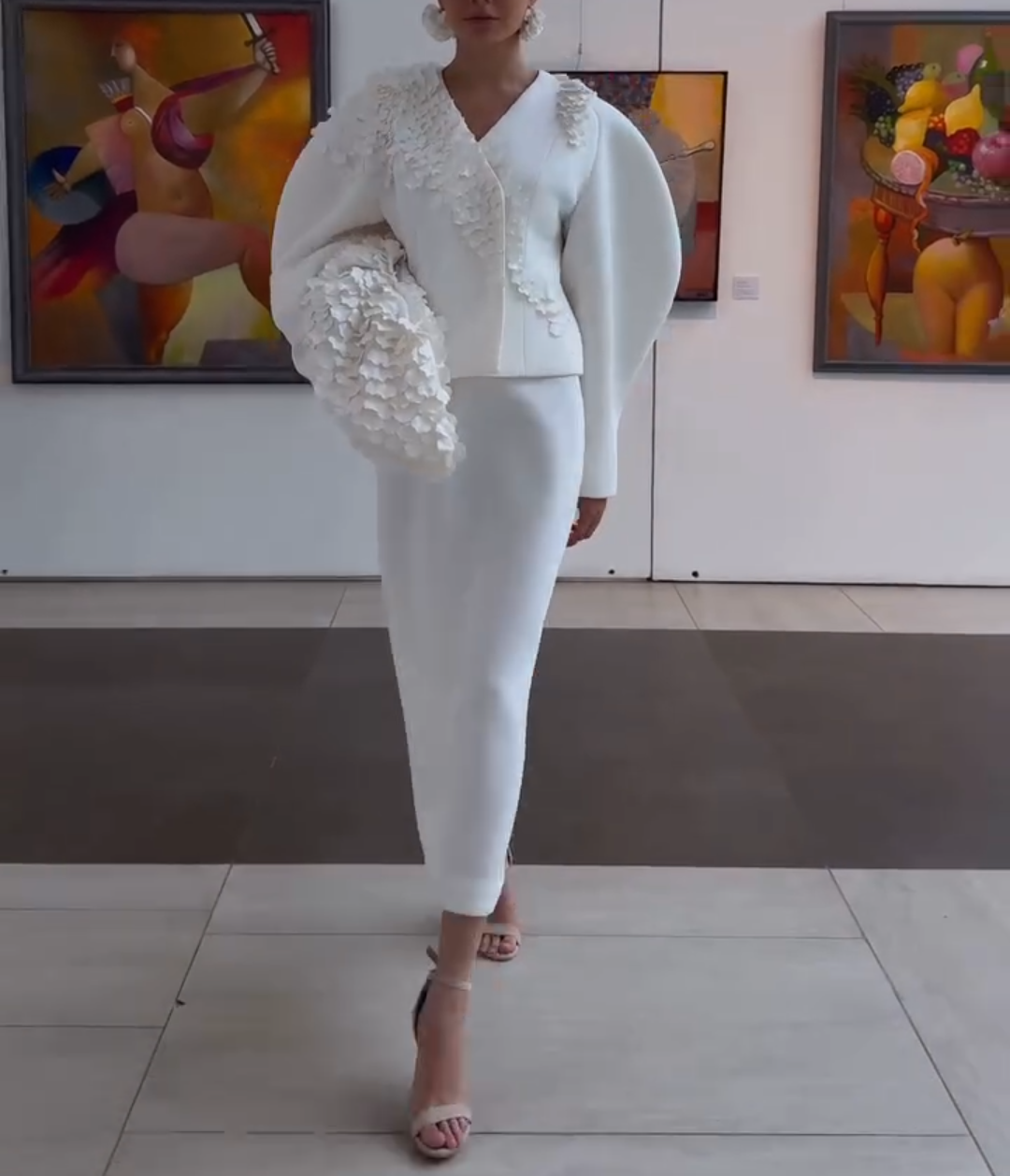 Petal Embellished Jacket & Skirts 2-Piece Set