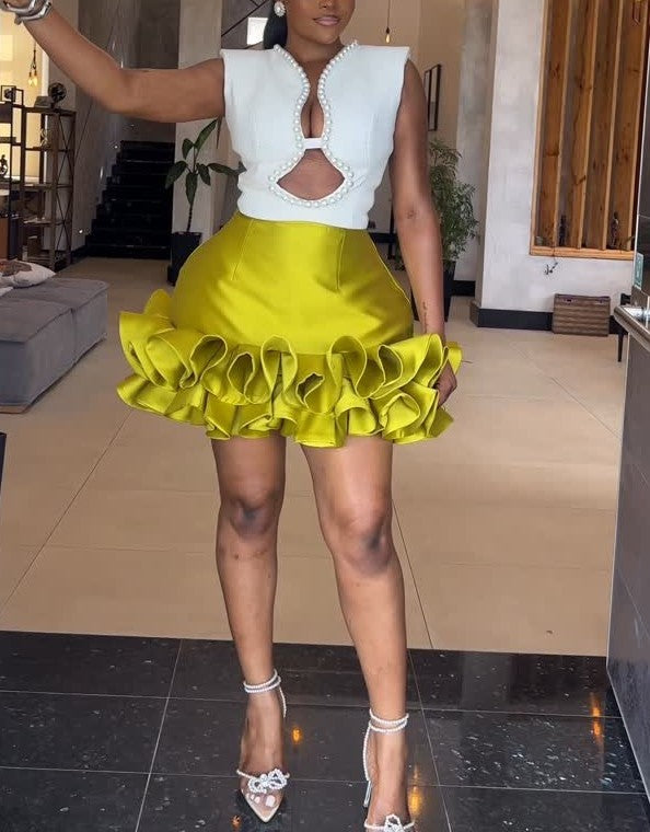 Sleeveless Pearl Accent Colorblock Mini Dress
